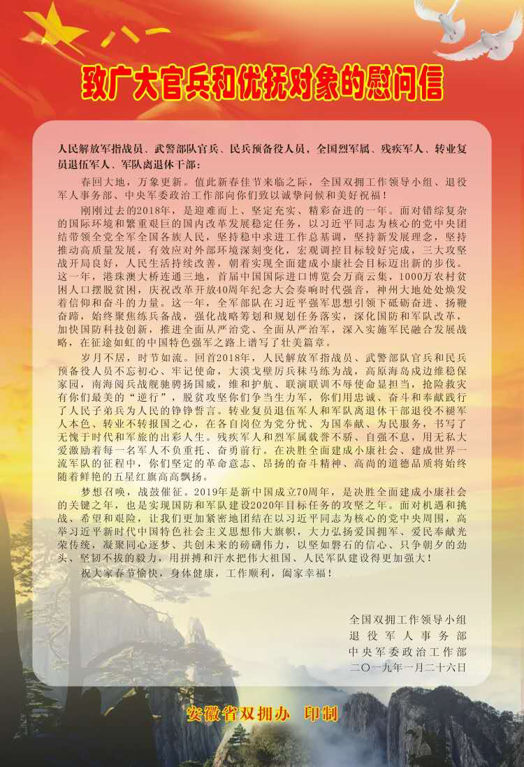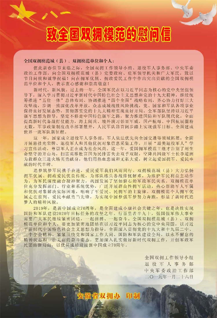 安徽省雙擁辦慰問信