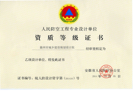 經(jīng)過建筑室、辦公室和總師室的共同努力,我院申報的人防工程設(shè)計乙級資質(zhì),于2014年5月5日獲得安徽省人民防空辦公室批準(zhǔn),這標(biāo)志著我院可以承擔(dān)本省范圍內(nèi)2萬平方米以下人防工程建設(shè)項目(不含各類人防指揮所、專業(yè)隊工程、醫(yī)療救護(hù)工程、一等人員掩蔽部)主體工程、配套工程及地面附屬設(shè)備設(shè)施用房的設(shè)計業(yè)務(wù)。
