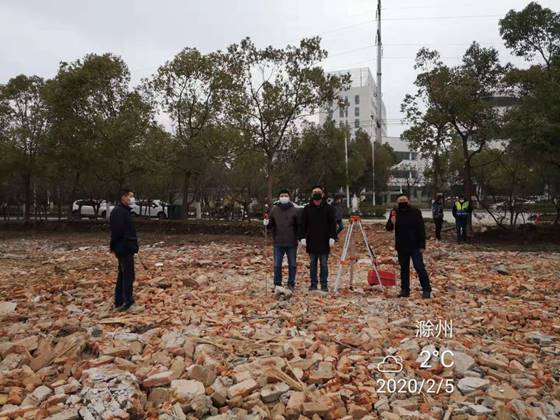 2月3日,我院再次接到市重點(diǎn)工程管理處的緊急任務(wù),由我院測量隊(duì)承擔(dān)市新型冠狀病毒肺炎定點(diǎn)收治備用醫(yī)院三期場地的地形圖及土方測繪工作。疫情就是命令,測量隊(duì)隊(duì)員們聞令而動,紛紛請戰(zhàn)。由副隊(duì)長蔣蔚、主任工程師梁發(fā)軍帶領(lǐng)5名隊(duì)員,帶著測繪工具,不顧場地泥濘,于2月4日上午八點(diǎn)半準(zhǔn)時到達(dá)現(xiàn)場,立即開展工作,并于當(dāng)日完成了測量數(shù)據(jù)采集、傳輸、整理和制圖工作,為備用醫(yī)院三期建設(shè)提供了詳實(shí)的第一手基礎(chǔ)資料。